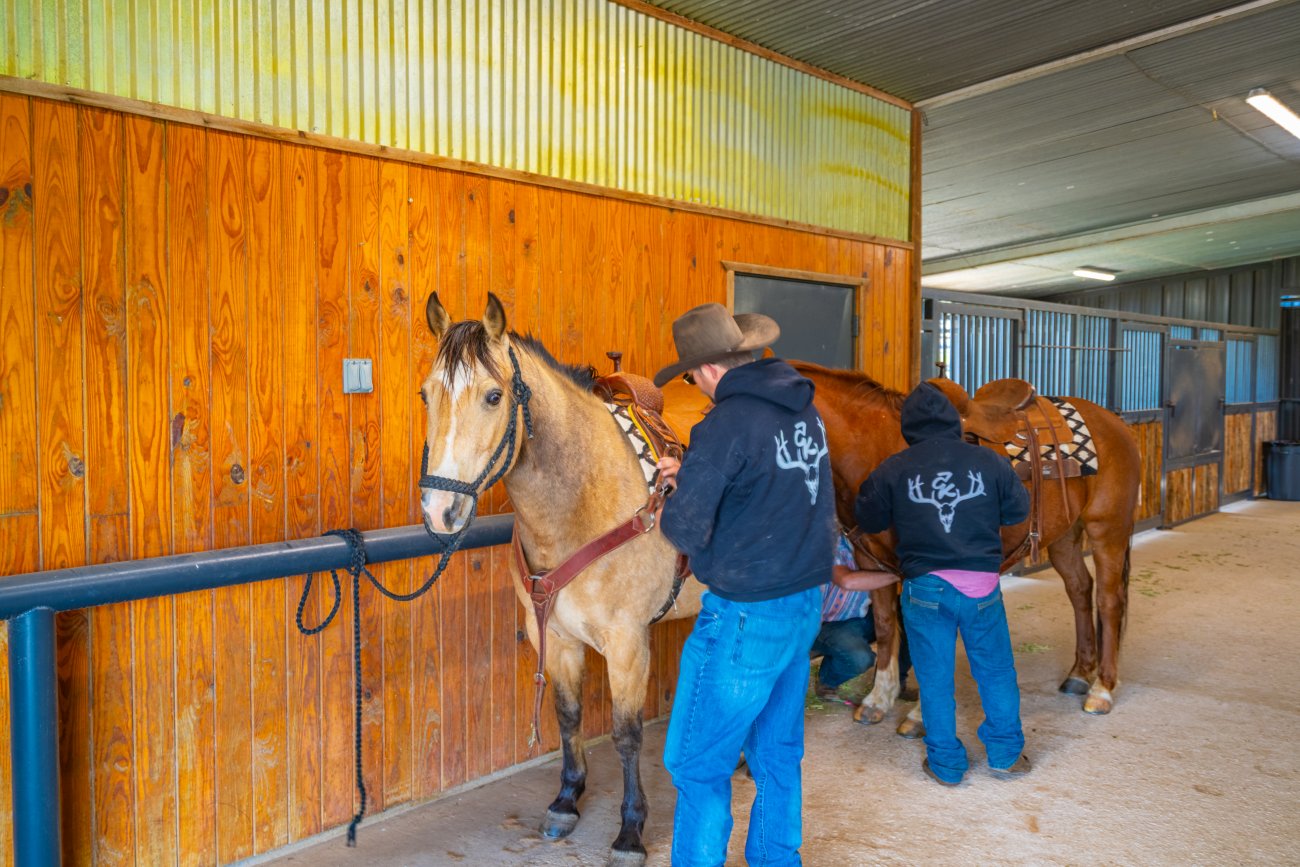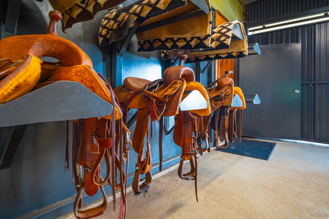 On the property, there is a custom home, a high-end covered arena, and a guest house.