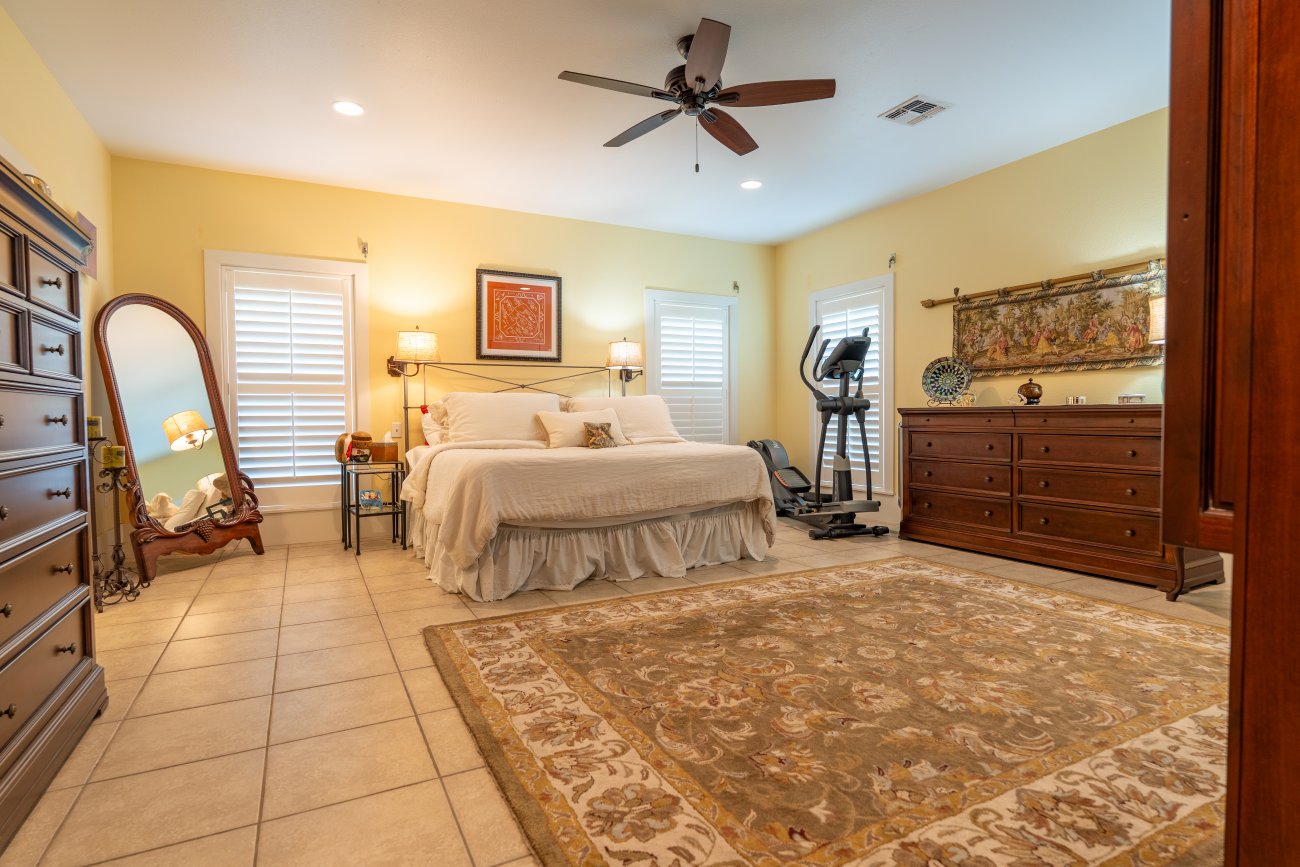 The property is well improved and designed for comfortable country living and functional ranch use. At the center of the ranch is a 3,349± square-foot, single-story ranch-style residence with 3 bedrooms and 3 full bathrooms, featuring an open concept layout, generous living spaces, a spacious kitchen, and a bright sunroom overlooking the surrounding acreage.