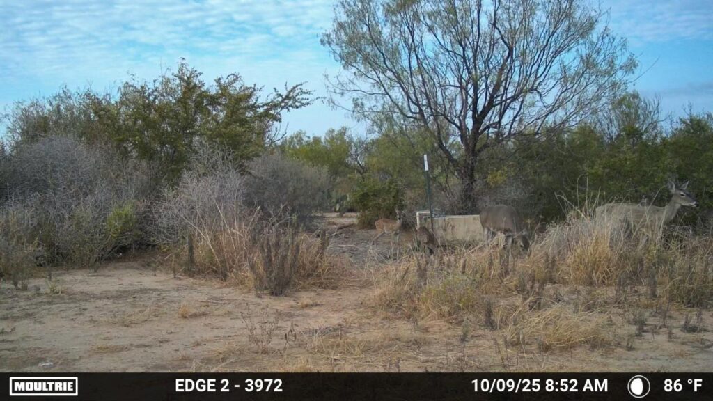 The ranch supports native game populations of white-tailed deer, northern bobwhite quail, scaled (blue) quail and javelina. A few feral hogs can typically be found on the ranch along with non-game native species. The owners also report a few other exotics have been spotted from time to time.