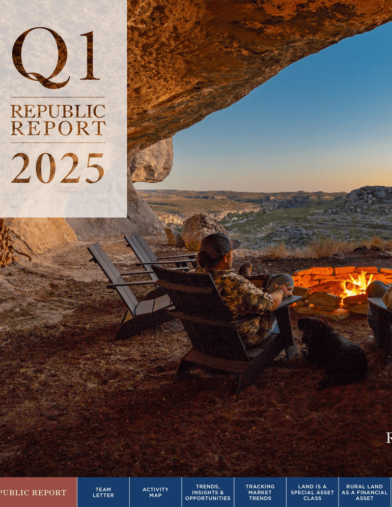 Republic Ranches compiles quarterly data from various sources to bring current trend information to clients and professionals. Our aim is to share this information along with exclusive industry insights and company updates in our new publication: the Republic Report.